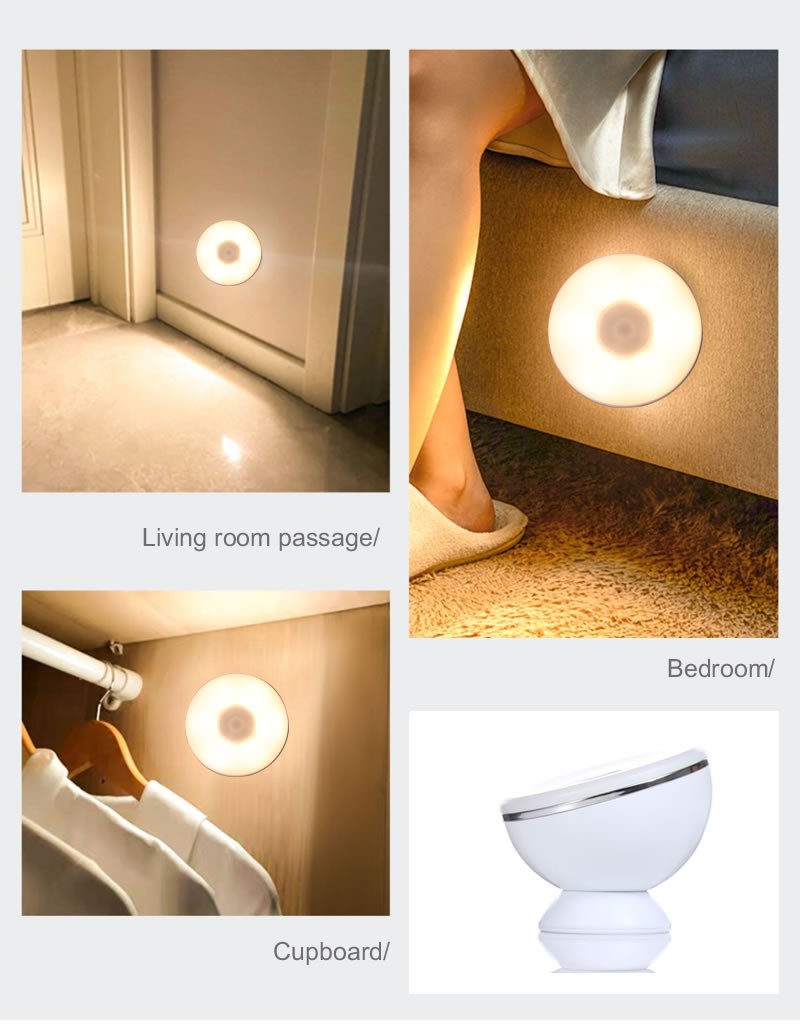 Product material: ABS Sense distance: 0~4M Battery: 3*AAA battery Light source: Warm tone Product size: ≈80x80x60mm Package size: 85x85x65mm